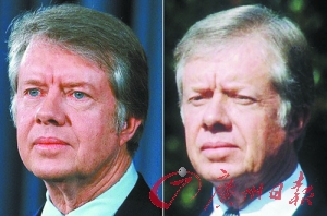 卡特總統(tǒng)就職前(左)與離任后對比。