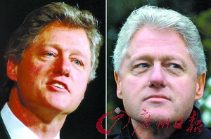 克林頓總統(tǒng)就職前(左)與離任后對比。