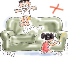 6 不要讓孩子在沙發(fā)上蹦蹦跳跳,以免將固定彈簧磨斷,或者造成彈簧斜,使之損壞。也不要讓孩子拿鋼筆、圓珠筆等在沙發(fā)上亂寫亂畫。