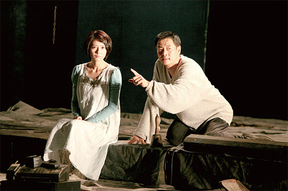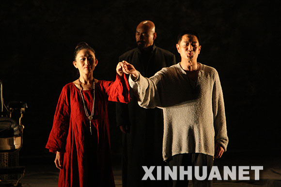10月21日,陳瑾(左)和濮存昕在《哈姆雷特1990》演出中。新華社記者 唐師曾 攝