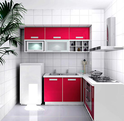 在裝修、布置小廚房的時候不僅需要各個面有色彩,而且還要有亮度,因為小廚房的使用面積非常有限,所以在整體色彩安排方面,切忌“花哨”。特別要注意不能使用印有立體感圖案或明暗對比強烈的墻紙或墻磚,否則不僅會使廚房面積在視覺上顯得狹小,而且容易使人產(chǎn)生凹凸不平的錯覺。墻面色彩安排宜以白色或淺色為主,而不宜使用反差過大的顏色。