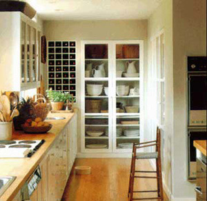 如果廚房不用來做飯,廚房的設(shè)計(jì)風(fēng)格就要引領(lǐng)整體家居環(huán)境,那么廚房就一定要設(shè)計(jì)成開放式。把廚房打開,才會(huì)融入到整體空間之中,使客廳更敞亮。如今的廚房家具已經(jīng)不只是幾個(gè)簡(jiǎn)單的柜體組合了,它可以變幻出各種造型,廚房家具完全可以勝任客廳家具的職能與款式,甚至可以有更多的選擇,比如電視柜,可以用廚房的門板做成,華麗的烤漆或者穩(wěn)重的實(shí)木,一點(diǎn)也不遜色于市場(chǎng)上板式家具;用人造大理石臺(tái)面做成的島式吧臺(tái),是今年盛行的設(shè)計(jì)形式,用在這種廚房中,它的作用就更大了,因?yàn)闃O少在家吃正餐,那么這個(gè)吧臺(tái)就成了早餐的操作臺(tái)與早餐桌,同時(shí)也可以成為客廳里的一個(gè)中心點(diǎn),放兩把吧椅,一邊是柜體,一邊是電視柜,閑暇時(shí),泡杯咖啡,看看電視,安逸的小資生活就呈現(xiàn)了。