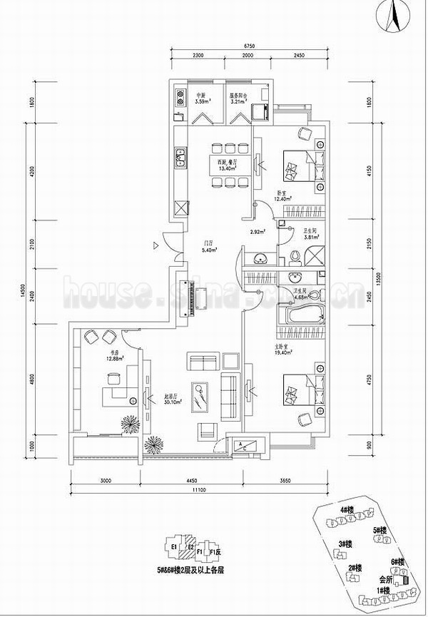 3.11.1米大面寬,書房、起居廳、主臥室均南向設(shè)置,可沐浴充足陽(yáng)光。