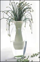不管用什么材料,必須先確定表現(xiàn)材料的哪些部分。如果首選是線條美感,整體搭配設(shè)計要突出簡潔,例如韭菜苔和西芹有較長的葉莖,就可以利用它的外形隨意插入水中,效果極佳。此時要注意的是其它元素的平衡性,建議最好用單純的顏色或同一色系的顏色。