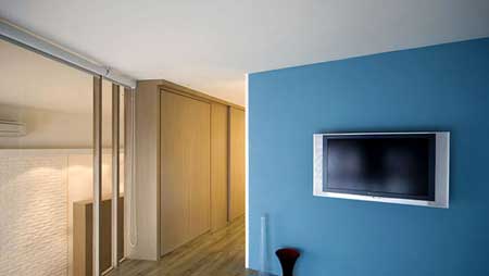 墻壁色彩搭配,在整個(gè)室內(nèi)設(shè)計(jì)中,最能顯示出空間感和層次感。通過色彩的變化,不僅有功能分區(qū)的作用,還能實(shí)現(xiàn)氛圍營(yíng)造及改變室內(nèi)溫度的視覺效果。因此,色系的選擇還必須參考室內(nèi)的空間大小、格局及家具多寡來考慮;而且,高明度的色彩使人感覺空間擴(kuò)大,低明度的色彩使人感覺居室縮小;暖色調(diào)感覺空間突出,冷色調(diào)感覺空間后退。耀眼的暖色調(diào)感覺重,淡雅的冷色調(diào)感覺輕。
