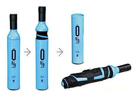 你能想象,那一只只可愛(ài)漂亮的酒瓶子是一把雨傘嗎?是的,它就是一把傘。雨傘可以折疊成酒瓶的形狀?沒(méi)錯(cuò)!設(shè)計(jì)師將雨傘的折疊方式進(jìn)行改良設(shè)計(jì),最終折疊的雨傘掛在架子上就像是一個(gè)個(gè)多彩的小酒瓶??磥?lái)你是真被這外表給欺騙了。
