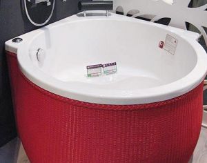 這是一款單人沐浴的沖浪浴缸,紅色塑料繩編制出的浴缸外衣非常搶眼,火紅喜慶的紅色搭配光潔白皙的浴缸,宛若一個妖嬈的女子在浴室之中展現(xiàn)迷人魅力。淋浴設(shè)備與浴缸分體,讓浴缸看上去極其簡介利落。同時圓形的設(shè)計也給浴缸增添了一些柔美可愛的感覺。當(dāng)您在一天繁忙緊張的工作之后,沐浴在這唯美的浴缸里,享受這溫柔的按摩,真是一種極致的享受。