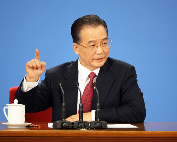 3月13日,國務(wù)院總理***在北京人民大會堂與中外記者見面,并回答記者提問。新華社記者姚大偉攝