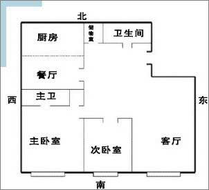 此戶型圖為東北缺角,東北角凹進去了3分1的位置,那么東北角代表著家中的男子,和在商業(yè)中的地位,也可稱為靠山,如果沒有了東北角,那么就相當(dāng)于沒有了靠山、財山和地位,或者是家中的男子不成器。