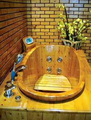 如果真的追求古人沐浴的感覺(jué),這款圓木桶應(yīng)該是最好的選擇,跟在電視上看到的模樣幾乎一樣,只是感覺(jué)用材更優(yōu)良,不必?fù)?dān)心發(fā)霉,而且還加了個(gè)小梯子,更顯人性化。要不這么高的木桶,還真該考慮要怎么走進(jìn)去。在木桶里灑上些花瓣,就和想象中的古人沐浴更加接近了;如果覺(jué)得那還不夠愜意,盡可以倒些牛奶、啤酒進(jìn)去,古今結(jié)合,定能洗出一身好皮膚。