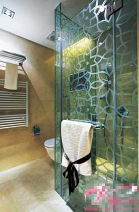玻璃分離衛(wèi)浴干濕區(qū)衛(wèi)浴間里側(cè)用帶暗紋的玻璃打造了單獨(dú)的淋浴間,將干濕區(qū)進(jìn)行了有效的分隔。