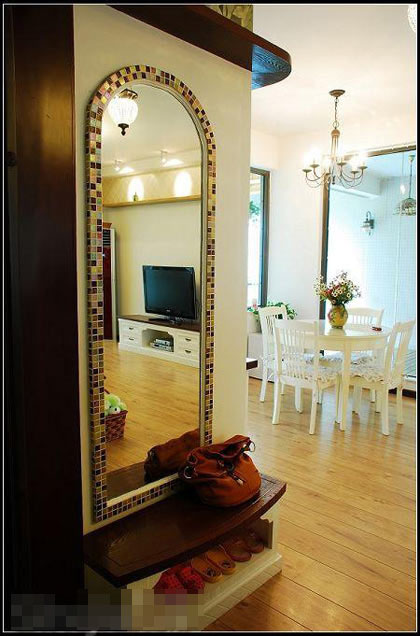 進(jìn)門處的鞋柜不僅可以收納鞋子,特別的穿透設(shè)計可以讓可愛的女兒和媽媽玩起捉迷藏的游戲。