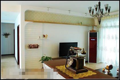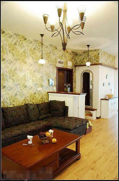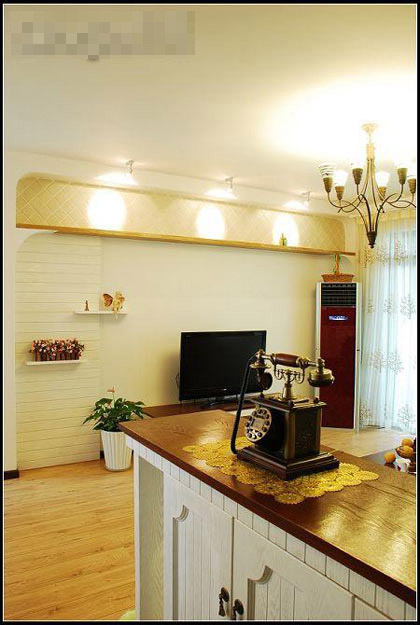燈具是質(zhì)感很強(qiáng)的作舊鐵藝燈,門廳和沙發(fā)邊都特意選購了不同的單頭小吊燈滿足不同時間的需要。