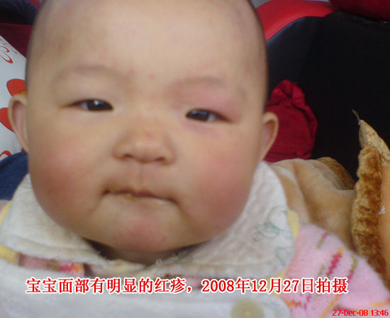 一位網(wǎng)名為“Jane”云南的母親給記者發(fā)來了她對(duì)強(qiáng)生嬰兒用品的控訴信,信中寫道“我的寶寶出生于2008年6月10日,四公斤,生下來的時(shí)候,已經(jīng)又白又胖,很是逗人喜愛。一直信任強(qiáng)生的產(chǎn)品,所以在生寶寶之前,就已經(jīng)給寶寶準(zhǔn)備好了一系列的強(qiáng)生洗護(hù)用品。從寶寶出生,每天都使用強(qiáng)生系列。寶寶三個(gè)月開始,我給寶寶買了‘強(qiáng)生嬰兒長效皴裂防護(hù)霜’也就是寶寶噩夢(mèng)的開始。寶寶開始長濕疹,因?yàn)閷殞氁恢绷骺谒覀円恢币詾槭且驗(yàn)榭谒畬?dǎo)致的。寶寶用這個(gè)霜一直到8個(gè)月大的時(shí)候,濕疹非常嚴(yán)重,整個(gè)小臉又疼又癢,搽霜的時(shí)候還大聲的哭鬧,無知的我,以為多搽一點(diǎn)就會(huì)好,每天寶寶睡著了,就搽很多在她的臉上。結(jié)果寶寶濕疹越來越嚴(yán)重。寶寶一直使用強(qiáng)生的嬰兒無淚配方的洗發(fā)香波,生下來的時(shí)候,頭發(fā)已經(jīng)很長了,滿月減了一些,發(fā)根處留了大概5毫米滿長。結(jié)果,5個(gè)月開始,有枕禿,現(xiàn)在還很嚴(yán)重。我和她爸爸頭發(fā)都很好,又黑又密的,偏偏寶寶的頭發(fā)越來越差,昨天給小家伙游泳還用了這個(gè)產(chǎn)品,現(xiàn)在才知道是這樣的原因。寶寶一直都用強(qiáng)生的牛奶沐浴露,身上起過疹子,如圖片所示,全身都是,很癢,因此寶寶睡不著覺,當(dāng)時(shí)也不知道什么原因??戳撕芏啻筢t(yī)院,都沒有看好。在一家傳統(tǒng)的中醫(yī)那里,花10元買到一小包藥粉面,聽說是維A和維E的面粉,攙在郁美凈里使用,黃黃的。用了一周,效果很明顯,濕疹已經(jīng)好了,但是寶寶的小臉已經(jīng)沒有像以前那樣白白的了,現(xiàn)在看上去都是黑黑的!寶寶現(xiàn)在也一樣的流口水,口水也很多,不過這幾天濕疹一點(diǎn)都沒有了。我姓沈,在云南,我是一名英語教師。如果有需要,我愿意出來作證?!?