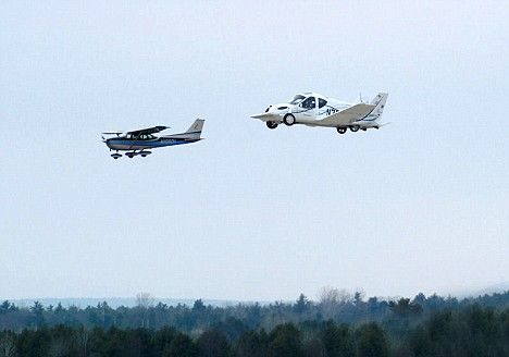 “飛車”名為“變形者”,實(shí)為陸空兩用輕型運(yùn)動(dòng)飛機(jī),機(jī)身長(zhǎng)5.8米,翼展8.4米。它于3月5日在紐約州普拉茨堡國(guó)際機(jī)場(chǎng)首次試飛,在空中飛行約900米后安全著陸。