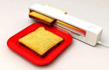 把鬧鐘的外形做成攪拌器的樣子,在杯中放入許多塑料小球。時間一到,攪拌器自動開啟,攪動里面的塑料球,發(fā)出刺耳的聲音。多懶惰的懶蟲相信也會被這刺耳的聲音叫醒。 掃描面包 新型烤面包機
