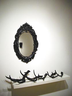 鏡子“女巫”在魔幻電影里,黑色一定是“女巫”的代表色,那些從惡魔世界帶來(lái)的鏡子絕對(duì)是奇幻的道具,丑陋的女巫們?cè)诰碌溺R子前發(fā)問(wèn):“誰(shuí)是最美麗的女人?”邪惡的鏡子永遠(yuǎn)給出一個(gè)讓女巫們瘋狂的回答。如同用瀝青包裹的鏡框絕對(duì)帶有魔幻的味道,而鏡下的裝飾品則更似“女巫”們的玩具。