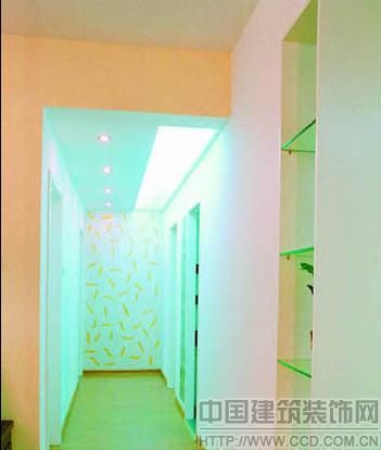 房子采用了三種材料。一是飾面板類(斑馬木飾面),二是玻璃材質(zhì)類(磨砂玻璃/水銀鏡面/玻璃磚),三是藝術(shù)涂料類。例如電視背景墻的造型,它是飾面玄關(guān)與水銀鏡面的綜合運(yùn)用,和白色墻體搭配,視覺(jué)上有不同材質(zhì)的混搭沖擊。同時(shí),在室內(nèi)不同角度看電視背景墻,效果又不一樣。從水銀鏡面看去,是客餐廳的再現(xiàn),豐富房子的層次感。從白色的電視墻看去,什么都沒(méi)有,不受任何的視覺(jué)干擾,看電視不錯(cuò)。從飾面玄關(guān)看去,它和藝術(shù)涂料刷成的過(guò)道景端形成呼應(yīng)。不管走到房子的哪個(gè)地方,都有值得欣賞和揣摩的地方。同時(shí),居室材質(zhì)協(xié)調(diào)得很好,不會(huì)很亂,也不會(huì)每處都突出,更不會(huì)分不出重點(diǎn)。這是材質(zhì)運(yùn)用的關(guān)鍵。得當(dāng)?shù)倪\(yùn)用才會(huì)達(dá)到意想不到的效果。否則,就是一種堆砌。