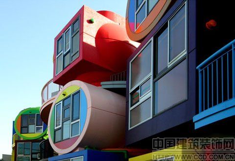 坐落在東京郊外三鷹市的一座老年公寓堪稱世上最花哨的住宅,由日本藝術(shù)家荒川修作和他的妻子、詩(shī)人瑪?shù)铝?#183;琴斯根據(jù)多種科學(xué)規(guī)律設(shè)計(jì)而成,其中包括神經(jīng)學(xué)及實(shí)驗(yàn)現(xiàn)象。這座建筑外形奇特,色彩艷麗,建筑內(nèi)部也是波瀾起伏,色彩繽紛。設(shè)計(jì)者的座右銘是“建筑對(duì)抗死亡”。