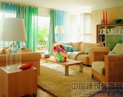 最能體現(xiàn)客廳清爽風(fēng)格的色彩當(dāng)然是各種各樣的藍(lán)色,仿佛在蛋清里攪拌過的柔嫩的藍(lán)色,變幻無窮,都是對(duì)客廳色彩的絕好演繹,且在視覺上有增大空間的感覺