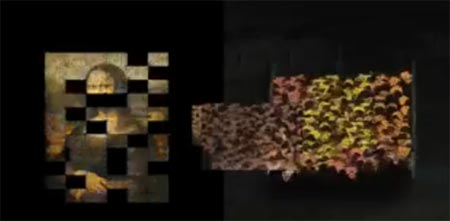 接下來(lái)的畫(huà)面更令人驚嘆:身披五顏六色發(fā)光二極管“外套”的羊聚集在一塊方形場(chǎng)地里,乍看之下并沒(méi)有什么特殊之處。但隨后畫(huà)面揭示,每群羊都構(gòu)成作品的一小部分,全部拼好后,竟然組成了達(dá)芬奇的名畫(huà)《蒙娜麗莎》。