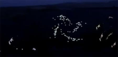 畫(huà)面上,一只牧羊犬身披發(fā)光二極管“外套”,奔上山坡,像一團(tuán)焰火躥上漆黑的夜空。突然,預(yù)先“埋伏”在山坡上的羊群四散,身上的發(fā)光二極管“外套”同時(shí)亮起,宛如煙花綻放。