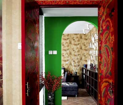 概要: 想要家具有視覺沖擊力,又不想使用慣常的單色重涂,不如就來個徹底的沖撞——紅與綠,大俗的色彩,卻又是最民族的色彩,包含了太多的色彩語匯與寓意,沒有比它們更適合的色彩了。一路傾瀉下來,處處濃墨重彩。門廊、客廳、臥室,甚至連衛(wèi)生間都不放過,紅色依綠色而明媚,綠色依紅色而濃郁,到處閃亮青春的熾熱與無忌。