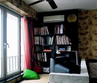 如何讓一個64平方米的空間充滿變數(shù)與可能,對于設(shè)計師而言應(yīng)該是最好玩的游戲了?,F(xiàn)在,一道矮墻隔斷了客廳兩邊,一邊是慵懶的藍(lán)調(diào)視聽空間,一邊是暢游沖浪的上網(wǎng)放松空間。而另一道矮墻出現(xiàn)在臥室,用小半段矮墻半包圍成電視墻,既滿足了在榻榻米上看電視的高度需要,又間隔出橙色簾幕一端的更衣區(qū)。