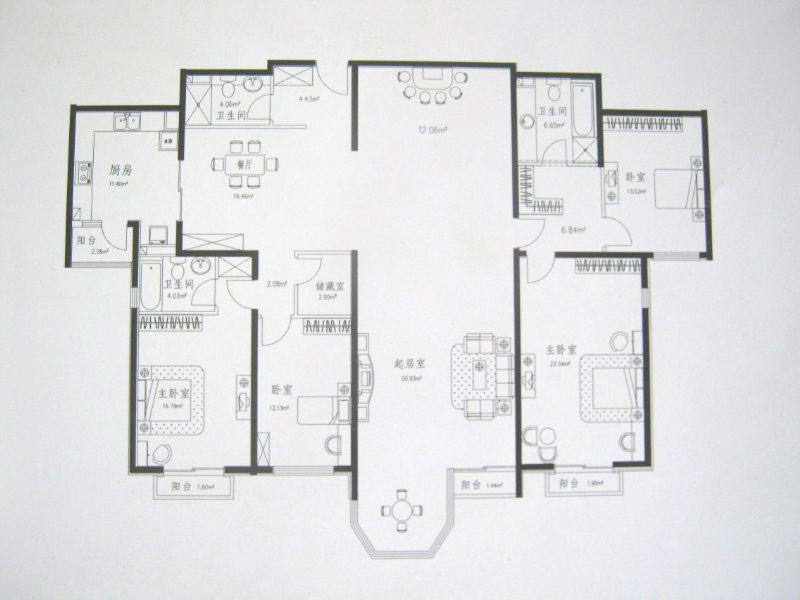 3、三個衛(wèi)生間面積較小,使用起來不方便,不是明衛(wèi),不利于濁氣排放。
