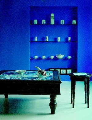 青花瓷外表清淡素凈,已有一種不可褻玩之意,而質(zhì)地硬朗,更有一種不從流俗的風(fēng)骨。單件欣賞可,真要與其他家什搭配得妥當(dāng)卻是不易。好就好在它一切淡定自然、自在我心。于是才終于等到那個(gè)懂得的人,以及那些沉著的老木。