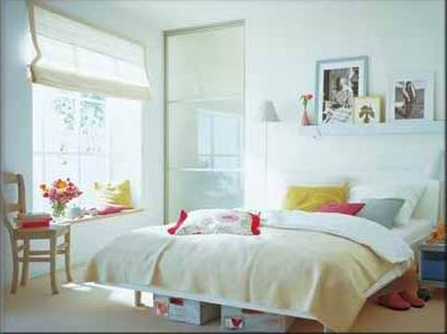 舒適的臥室可以讓人享受一場寧靜的酣睡,以白色為主基調(diào),搭配淺綠、藍(lán)灰,整體色調(diào)平靜而不蒼白,淺色所營造的寧靜氛圍讓煩悶的心情得到平復(fù)。白色床品上搭配古典花紋的灰色靠包和帶有灰度色塊拼接的織物,為臥室注入了輕松、隨意的元素,使整個空間在明媚中蘊(yùn)涵著沉靜的氣息。
