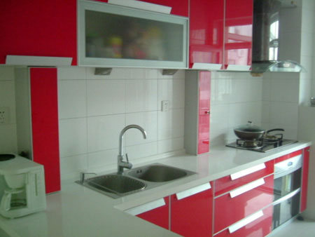 四、燈光布置——廚房燈光需分成兩個層次:一個是對整個廚房的照明,一個是對洗滌、灶頭的照明。后者一般在吊柜下部布置局部燈光,設(shè)置方便的開關(guān)裝置,還有現(xiàn)在的性能良好的抽油煙機一般也照有燈光、對烹飪是足夠了。