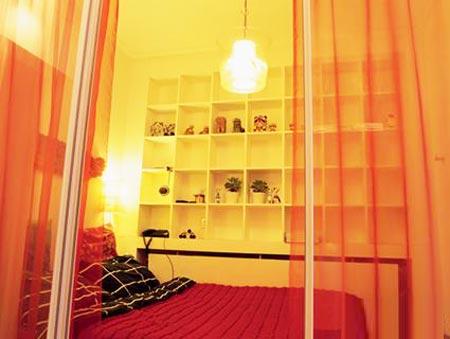 臥室顏色比較鮮艷,床頭上的裝飾與眾不同。