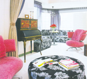 在陽(yáng)臺(tái)的位置上,布置有與客廳同系列的大花朵圖案沙發(fā),保持了空間彼此的連貫性。陽(yáng)臺(tái)與客廳間裝有一道簾子,打開(kāi)時(shí)客廳與陽(yáng)臺(tái)成為一個(gè)整體;拉上后,兩個(gè)空間便相互獨(dú)立開(kāi)來(lái),增添了空間使用的靈活性。