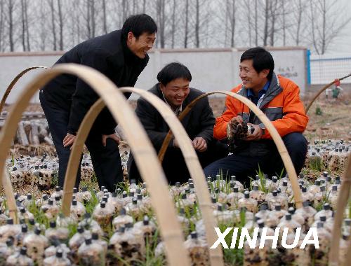 資料圖片:2009年3月24日,齊心征(右)向魚臺(tái)縣石集村返鄉(xiāng)農(nóng)民工史中峰(中)以及從江蘇睢寧縣遠(yuǎn)道而來學(xué)技術(shù)的農(nóng)民高宏光講解越冬地栽式黑木耳的培養(yǎng)技術(shù)。齊新征1998年從山東電力高等學(xué)校畢業(yè)后自主創(chuàng)業(yè),經(jīng)過10年摸索,逐漸掌握了食用菌基本栽培技術(shù)和管理方法。目前,他在家鄉(xiāng)山東省魚臺(tái)縣唐馬鄉(xiāng)創(chuàng)辦的濟(jì)寧億佳農(nóng)產(chǎn)品有限公司采取“公司+農(nóng)戶”模式,統(tǒng)一購種、統(tǒng)一技術(shù)指導(dǎo)、統(tǒng)一回收、統(tǒng)一銷售,帶動(dòng)周邊農(nóng)戶和返鄉(xiāng)農(nóng)民工共走致富路。新華社記者尹棟遜攝