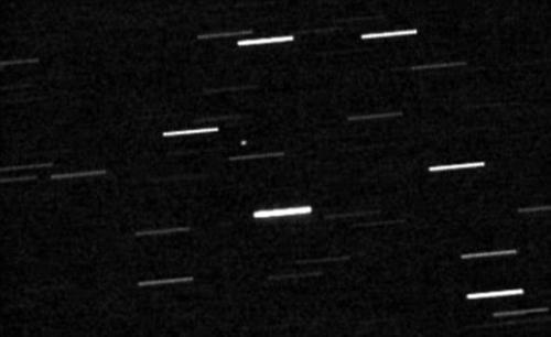 通過望遠(yuǎn)鏡拍攝的這顆小行星照片(其中的光點)