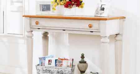 古典款式的玄關(guān)桌可以彰顯此處的典雅感覺(jué),抽屜可以收納小物品。