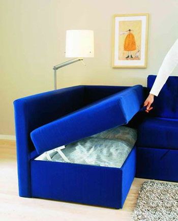 沙發(fā)不僅可以變成床,也可以“變身”成儲藏箱,幫助主人存放平時不用的被單、衣物。只需要提一下手拉帶,沙發(fā)的內(nèi)部空間就可以展露眼前。