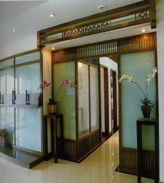 另外,在屏風的大小選擇上已經(jīng)不能遵循古人的做法了,因為中國傳統(tǒng)大宅院入門之處均設(shè)有大型的玄觀,而現(xiàn)代都市的住宅普遍面積狹窄,若再設(shè)置傳統(tǒng)的大型玄觀,顯然不和時宜。折衷的辦法是用玻璃屏風作間隔,這樣既可以防止外氣從大門沖入客廳,也可令玄關(guān)不顯得過于狹窄。