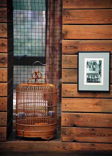 用鸚鵡的絢爛色彩,可打破原木墻面的濃厚懷舊感。在這里,地面采用的材料最好與墻面協(xié)調,色澤、肌理一致的自然材料都可以有很不錯的表現。