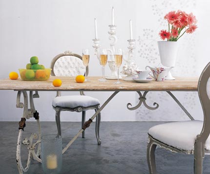 餐桌的桌面樸素得可愛,打磨過的粗糙桌面,故意略帶銹跡的鐵藝桌腿,似乎正在放映的一部老電影。鏡頭切換,當金色香檳與精致燭臺同時出現(xiàn),居室打造的另一種情感表達方式油然而生,時光流轉(zhuǎn),但甜美依舊。