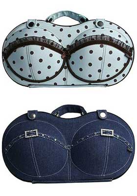 女孩子在旅游或出差時(shí),一般都會(huì)攜帶幾個(gè)胸罩,直接把胸罩放到大皮箱中往往會(huì)壓變形,而有了這個(gè)專門放胸罩的包,隨身攜帶,最多可以放6個(gè),足夠在外出期間更換。多種款式可選,售價(jià)在50美元左右。