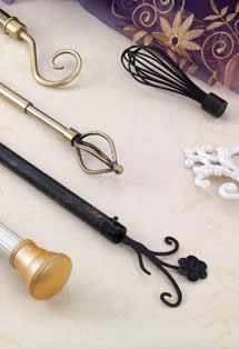 窗簾桿的材料以金屬和木質(zhì)為主,風(fēng)格也各有不同。鐵藝桿頭搭配絲質(zhì)或紗質(zhì)的窗簾,用在臥室中,有剛?cè)岱床顝?qiáng)烈的對比美。而木質(zhì)桿頭,給人以溫潤的飽滿感,使用范圍和搭配風(fēng)格不太受限制,適合于各種功能的居室。