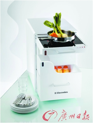 這款設計由四個部分組成:最頂部的不銹鋼臺面可以用來準備食材;第一個抽屜是抽取式的電磁爐;中間的抽屜可儲存碗筷;而最下面的是一個迷你冰箱。如果想開車出去野炊,這款電爐灶最心水不過。對于廚房空間較為緊張的家庭而言,這樣一款爐灶也是非常實用的。