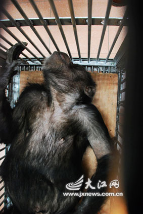 在被抬進手術(shù)室前,南昌動物園的黑猩猩“壯壯”躁動不安,不停嚎叫。