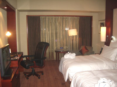 酒店臥房在顏色上采用大面積的米色或白色為主體,輔以不同層次的灰黑紅色彩,與深色家具進(jìn)行協(xié)調(diào)搭配,勾勒出家居時(shí)尚的整體輪廓。