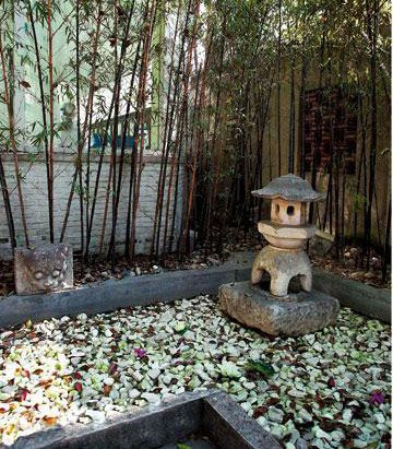庭院一角,竹叢與石龕帶來古雅寧靜的中國氣質。