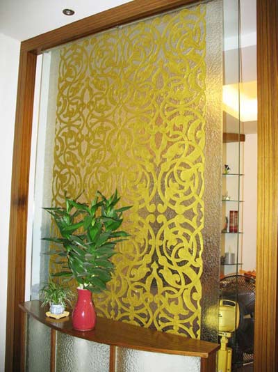 此外,還可以在門(mén)廳與客廳或衛(wèi)生間分界處,設(shè)計(jì)上一套屏風(fēng)或玻璃隔斷,,既保證了門(mén)廳的完整性,又減弱了空間的封閉感。