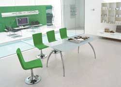 概要: 一張美好的餐桌,帶來的不僅僅是豐盛夜宴的可能性,有時(shí)候還意味著朋友們都喜歡你家的溫馨意味,或者羨慕你的生活品質(zhì)…… 1、簡潔 屬于典型的意大利設(shè)計(jì),風(fēng)格簡單得不能再簡單,餐桌為原木質(zhì)地,配以皮質(zhì)餐椅,可以同時(shí)供4人在上面就餐?! ?、現(xiàn)代 餐桌為磨砂玻璃桌面,底部為金屬支腳,餐椅使用了鮮艷的綠色,整體給人以現(xiàn)代時(shí)尚感覺。
