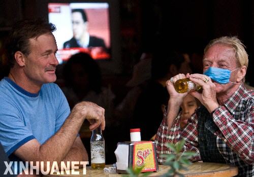4月25日,在墨西哥首都墨西哥城的繁華地區(qū),游客帶著口罩用餐、飲酒。當(dāng)日,墨西哥**派遣警力和士兵為墨西哥城市民免費(fèi)分發(fā)600萬(wàn)只口罩。據(jù)報(bào)道,截至目前,墨西哥已發(fā)現(xiàn)80多人死于流感,其中至少20人確診感染了A/H1N1型豬流感病毒。新華社發(fā)(戴維攝)